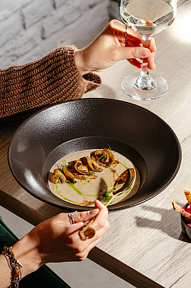 Профессионально выполняет свою работу, прислушивается к каждому слову, советует, как сделать лучше или как исправить подачу для более эффектного вида. Человек действительно любит еду и то, что делает.